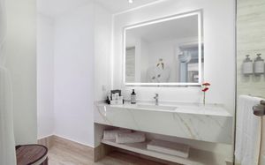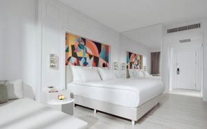 После реновации, абсолютно новый ремонт, техника, интерьеры, экстерьеры. Очень красивая территория. Питание хорошее, красная рыба, авокадо, артишоки на завтрак и многое другое. Кофе с альтернативным молоком, отдельно есть кондитерская с авторскими десертами. В общем по еде все супер, были конечно отдельные не вкусные позиции, но так всегда и везде бывает. Большой выбор алкоголя иностранного, все виды коктейлей. Шоу программа классная, мы попали на мистера и миссис fashion tv. Целую неделю в отеле были очень красивые модели, вечеринки, разные показы мод, диджеи и известные местные звезды. Поэтому скучно не было от слова совсем.