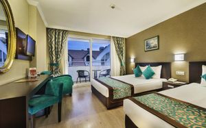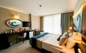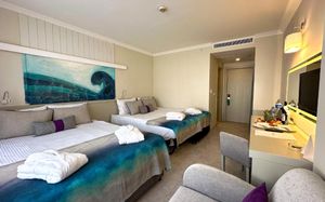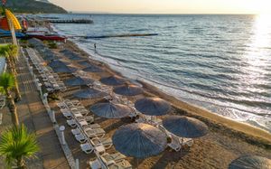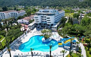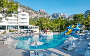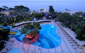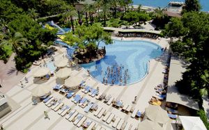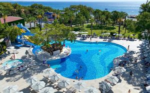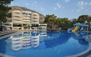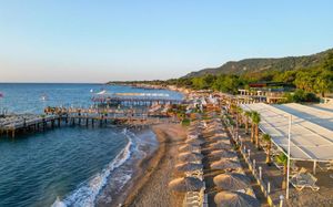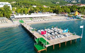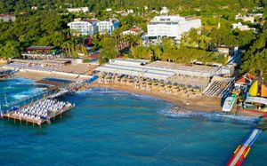К услугам гостей этого прибрежного курортного отеля аквапарк с водными горками, теннисный корт, поле для мини-гольфа, сауна и хаммам. С территории открывается панорамный вид на зеленые горы Бейдаглари и бирюзовое Средиземное море. В пляжной зоне построена пристань и установлены шезлонги для отдыха в течение дня.