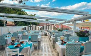 Рестораны a la carte/шведский стол:Ресторан итальянской кухни, Ресторан турецкой кухни и Рыбный ресторан Часы работы ресторанов 19:00-21:00. Необходима предварительная резервация Возможно одно бесплатное посещение ресторанов (при проживании не менее 7 ночей)