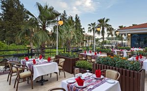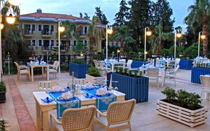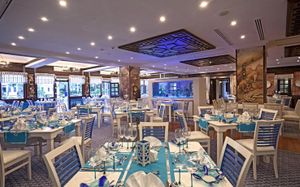Рестораны a la carte/шведский стол:Рыбный ресторан, Итальянский ресторан, ресторан Lalezar (мясные блюда) Часы работы ресторанов 19:00-22:00. Необходима предварительная резервация Возможно одно бесплатное посещение одного из трех ресторанов A'la Carte (при проживании от 5 ночей)