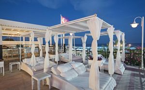 Бары:Лобби-бар - работает круглосуточно Бар у бассейна 10:00-00:00 Бар у бассейна Relax 10:00-18:00 Бар на пляже 10:00 - 18:00 Aqua Bar (в аквапарке) 10:00 - 12:30 и 14:00 -17:00 Диско-бар 00:00-02:00 Rose bar (караоке) 21:30-23:00 (платно)