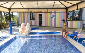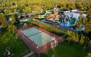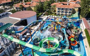 1 открытый бассейн с пресной водой, площадь 500 кв.м 1 открытый бассейн с пресной водой, площадь 425 кв.м. имеется детская секция 25 кв.м 1 открытый детский бассейн с пресной водой в мини-клубе, площадь 17кв.м.(глубина 40 см) 1 крытый бассейн с пресной водой (с подогревом), площадь 85 кв.м 1 крытый детский бассейн с пресной водой, площадь 14 кв.м.(глубина 50 см) 7 водных горок для взрослых и 4 горки для детей, часы работы 10:00-12:30 / 14:30-17:00 (без подогрева, работают в зависимости от погодных условий) Открытые бассейны и аквапарк не подогреваются
