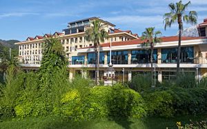 Отель Club Phaselis Rose построен на берегу моря в районе Текирова. К услугам гостей частный песчаный пляж и большой зеленый сад. В отеле сооружены 2 открытых бассейна, 3 водных горки и спа-салон.