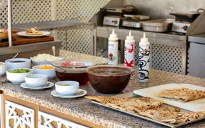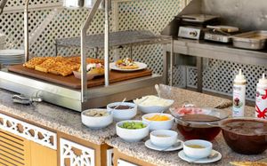 В главном ресторане подают блюда турецкой и интернациональной кухни в формате "шведский стол". В меню 3 других ресторанов представлены кушанья из мяса, кебабы и морепродукты. Трапеза сервируется как в помещении, так и на свежем воздухе. В барах можно заказать разнообразные алкогольные и безалкогольные напитки.