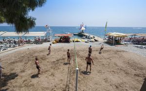 Хороший отель. Пляж небольшой, песок с галькой. Удобное расположение, магазины в пешей доступности. Еда и напитки круглосуточно.