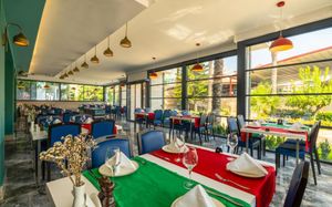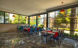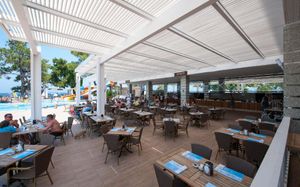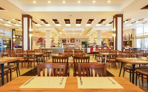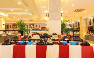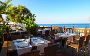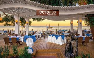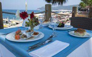 Рестораны a la carte/шведский стол:Рыбный ресторан (платно, 18:30-23:00), Итальянский ресторан (18:30-23:00). Турецкий ресторан (18:30-23:00) Возможно одно бесплатное посещение одного из ресторанов (при проживании не менее 7 ночей) Необходима предварительная резервация Все вина, шампанское и заказ особых блюд в ресторанах A la Carte за дополнительную плату (за исключением столового вина)