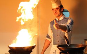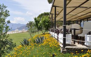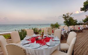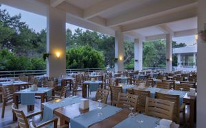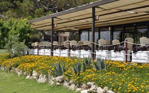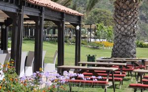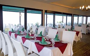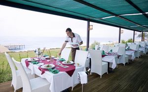 Ресторан не предусмотрен в случае непогоды. Когда был сильный ливень, слив не справлялся и ресторан затопило во время обеда, но к ужину все убрали и все было в обычном режиме.