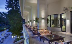 Очень приветливый персонал ресепшена, Отель расположен в очень хорошем месте, бассейн отличный, номера чистые, территория отела как лес