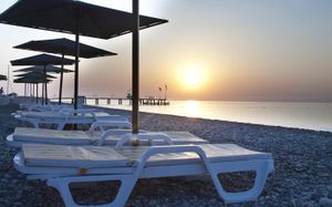Территория пляжа: собственный песчано-галечный пляж, галечный пляж, полотен...