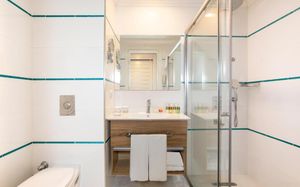 Очень понравился айс-кофе в кафетерии, а также вкусное мороженое в шариках, которое подавали с 14:00 до 17:00 — отличный бонус в жаркий день. Также недалеко от отеля находится порт и уютный зелёный парк — отличное место для вечерней прогулки. После ужина особенно рекомендую пройтись — красиво, спокойно и приятно.