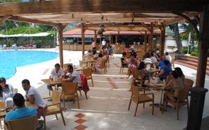 Компактная территория - нет необходимости проделывать длинные путешествия к пляжу или к бару от пляжа. Отель находится практически в гуще событий города Кемер. Питание на среднем уровне, но все очень неплохо. Бары работали до 3х ночи.