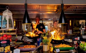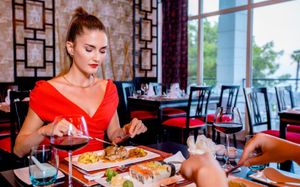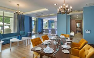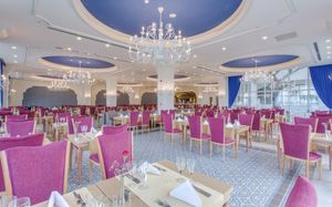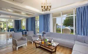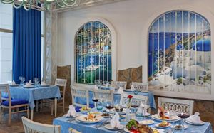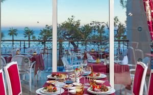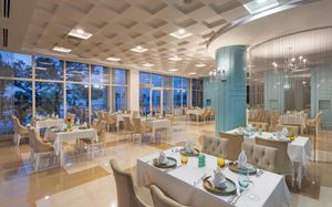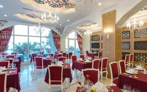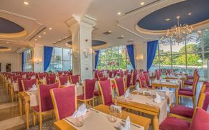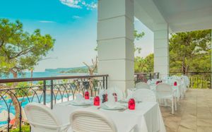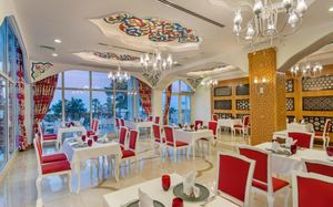 Отель работает по системе «ультра все включено», в которую входят питание в любом ресторане отеля и некоторые напитки. В ресторанах с обслуживанием по меню подают блюда турецкой, итальянской и китайской кухни, а также фирменные рыбные блюда. В барах в течение всего дня можно заказать различные напитки.