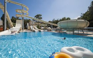 Открытые бассейны с пресной водой: 824 кв.м, глубина 140 см 321 кв.м, глубина 140 см (с подогревом в холодное время года) 561 кв.м, глубина 140 см 486 кв.м, глубина 140 см 463 кв.м, глубина 140 см 639 кв.м, глубина 140 см Открытые бассейны с пресной водой в Аквапарке: 957 кв.м, глубина 140 см 97 кв.м, глубина 140 см 320 кв.м, глубина 140 см Аквапарк - 6 горок для взрослых, 3 для детей (без подогрева), часы работы 10:00-12:00 / 14:00-16:00 Горки работают в зависимости от погодных условий Шезлонги, зонтики, матрасы, полотенца, душ, туалет и кабинки для переодевания
