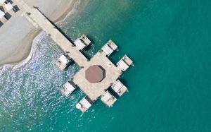 Аккуратно утром плавать рядом пирсом. В камнях живёт крылатка. Ну это скорее достопримечательность.