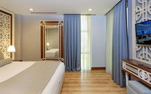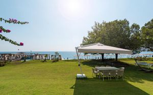 Отличная территория и расположение отеля. Природа вокруг- красота. Отель - детский сад. При этом из-за большой территории не чувствуется, что много народу. Рядом неплохой базар.