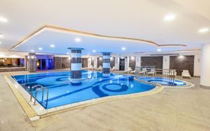 1 открытый бассейн с пресной водой, без подогрева, 350 кв.м 1 крытый бассейн, 97 кв.м (подогрев с 1/11 по 31/03)