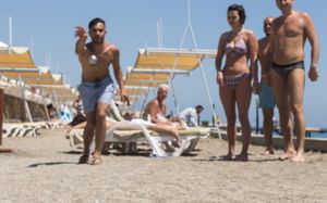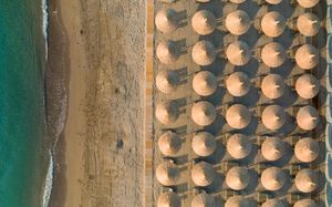 1 линия, песчаный пляж, полотенца, шезлонги, матрасы, зонтики