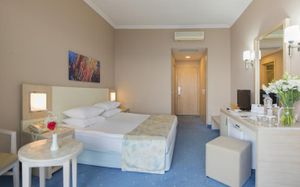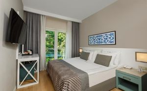 Отель Grand Park Kemer - Ultra расположен прямо на набережной. Отель All Inclusive предлагает роскошный спа-центр и открытый бассейн с видом на залив Антальи. Полностью отремонтированные в апреле 2019 года номера оформлены в спокойных тонах. Большие окна обеспечивают хорошее естественное освещение. В каждом номере есть меблированный балкон с видом на Средиземное море или лес. Гости отеля Grand Park Kemer могут искупаться в освежающем бассейне. Гости могут поплавать в крытом бассейне или заказать расслабляющий массаж. В отеле Grand Park Kemer - Ultra. Кроме того, в распоряжении гостей турецкая баня, сауна и салон красоты. В отеле также работает мини-клуб. В отеле Grand Park Kemer - Ultra. Отель All Inclusive расположен в 28 км от аэропорта Анталии.
