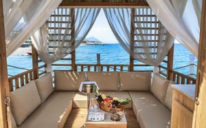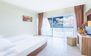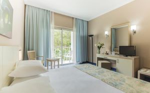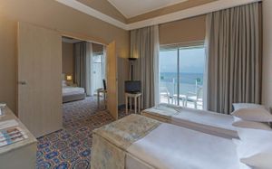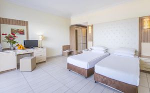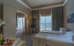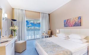 Очень хороший отель. Незаюзанный, похож на отели в Дубае. Веселый такой, тусовка и дискотека по вечерам. Программы развлекательные и диджей. Очень вкусная еда!!! Номера в главном корпусе на верхних этажах просто супер. Вид офигенный на море