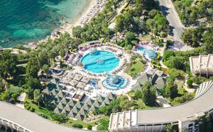 Этот пляжный курортный отель располагает номерами с панорамным видом на море и пейзажным бассейном с видом на Эгейское море. Отель расположен в 3 км от центра Кушадасы. Предоставляется бесплатный Wi-Fi. Просторные и светлые номера отеля Grand Blue Sky International оснащены кондиционером. Во всех номерах есть балкон, спутниковое телевидение и отдельная ванная комната с ванной. На 1 ночь гости могут посетить один из 3 ресторанов с обслуживанием по меню, где подают блюда из свежих морепродуктов, а также блюда итальянской и традиционной османской кухни. К услугам гостей гранд-отеля Blue Blue школа дайвинга, теннисные корты и хаммам. В отеле организуются тематические вечера и профессиональная развлекательная программа. В отеле работает детский клуб. В 30 минутах езды находятся такие достопримечательности, как традиционная турецкая деревня Киразли и национальный парк полуострова Дилек. Расстояние до аэропорта Измира имени Аднана Мендереса составляет 81 км.