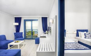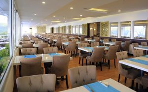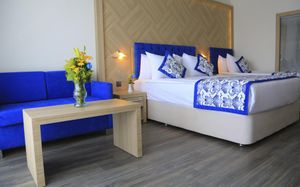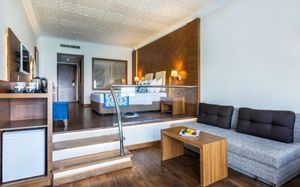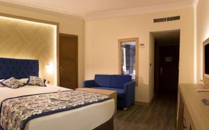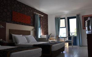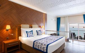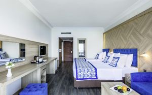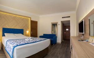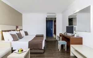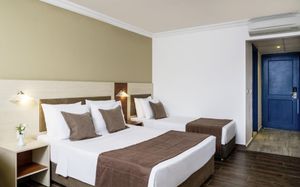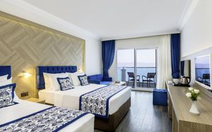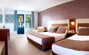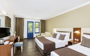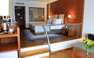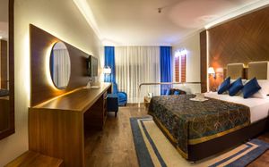 Соотношение цены и качества нас устроило. Мы были в начале сентября, погода была хорошая. Территория отеля огромная, 2 паркинга, аквапарк, территория с бунгало и большой корпус с номерами. Мы были на мотоцикле, паркинг бесплатный. Как мы поняли все номера с видом на море. Номер большой, есть гостинная зона с диваном, есть балкон. Единственное, что расстроило это уборка, а вернее её отсутствие. Уборка заключалась, что полотенце для ног поднимали с пола и вешали на ванну, хотя пол не мыли. Один раз увидели уборщицу, она выходила из номера , вроде убралась, мы её вернули и показали грязный пол и мелкий мусор на полу. Отель находится на нескольких ярусах, к морю идти по лестнице или можно доехать на паровозике, на пляже есть бар, где днём можно перекусить, чтобы не подниматься в центральный ресторан. В ресторане очень большой выбор еды, за каждым приёмом пищи дают мороженое. Питание первые 2-3 дня было более скромное, потом каждый обед и ужин было несколько видов мяса и рыба была каждый день, очень много закусок. Свободные лежаки у бассейна после 10 сложно найти. Анимация хорошая. В общем нам отдых понравился.