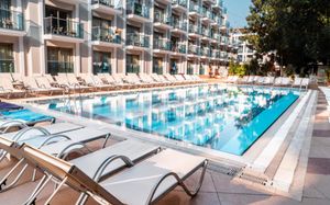 Emre Beach & Emre Hotel — это отель в городе Мармарис, в 300 м от такой достопримечательности, как Общественный пляж Мармариса. Среди удобств — открытый бассейн, фитнес-центр, сад и бесплатная частная парковка. Кроме того, к услугам гостей частный пляж и терраса, а также ресторан. Гости могут обратиться к сотрудникам круглосуточной стойки регистрации, воспользоваться трансфером от/до аэропорта или общим лаунджем, а также подключиться к бесплатному Wi-Fi на всей территории.