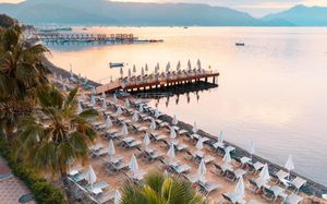 Отель Emre Beach Hotel расположен на самом берегу моря, в 3 км от г. Мармарис. Общая территория с отелем Emre Hotel (бары, рестораны, пляж, бассейны и т.д.).