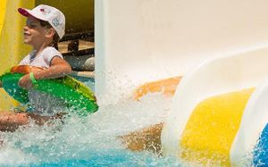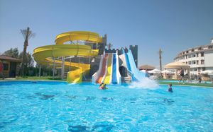 2 открытых бассейна: без подогрева, площадь 1000 кв.м, 757 кв.м 1 крытый бассейн без подогрева, площадь 90 кв.м 3 водные горки, часы работы 10:00-12:00 и 14:00-17:00 Горки работают в зависимости от погодных условий (примерно с 15/05 по 15/10)