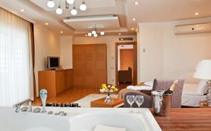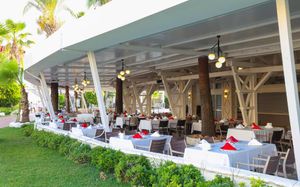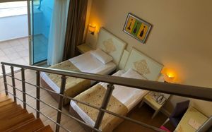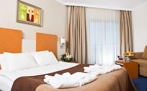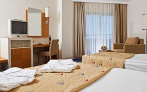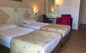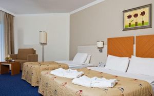 Отель расположен в 80 км от аэропорта Антальи, в 50 м от собственного пляжа (через дорогу). Рекомендуем для активного семейного отдыха.