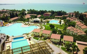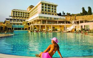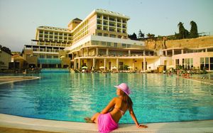 Плюсов много, но твердую четверку стоит, не пять точно! питание понравилось, номера чистые, новые, уборка каждый день! есть аквапарк, два детских бассейна с горками, территория большая ухоженная, персонал приветливый, пляж чистый, море идеальное! По набережной прогулка по вечерам!