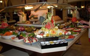 Расписание работы основного ресторана:Завтрак 07:00-10:00, поздний завтрак 10:00-11:00, обед 12:30-14:00, ужин 19:00-21:00, поздний ужин (мини-буфет) 23:00-04:00. Шведский стол Закуски в Ra & Ra ресторан 11:30 - 16:00 Кондитерская 12:00 – 18:00