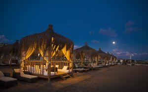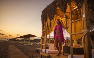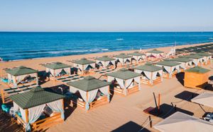 Павильоны на пляже - платно, примерно 60 euro /день В зимний сезон пляж не работает