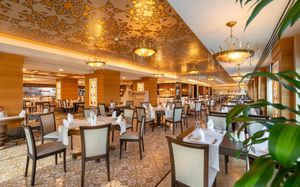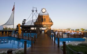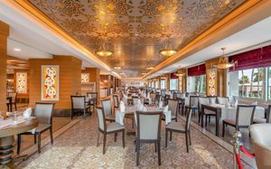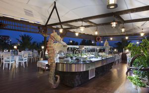Рестораны a la carte/шведский стол:Турецкий ресторан, Мексиканский ресторан, Китайский ресторан, Рыбный ресторан, Итальянский ресторан. Часы работы ресторанов 19:00- 21:30 Гости, за 7 ночей проживания, получают право один раз посетить Турецкий A La Carte ресторан бесплатно, по предварительной резервации Во всех ресторанах действует дресс-код В зимний сезон работает Средиземноморский ресторан (1 посещение бесплатно, при проживании не менее 6 ночей)