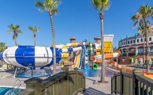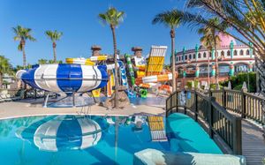 2 открытых бассейна (на территории комплекса 12), без подогрева 1 крытый бассейн (на территории комплекса 2 бассейна), подогреваются в холодное время года 6 водных горок, работают по расписанию, в зависимости от погодных условий