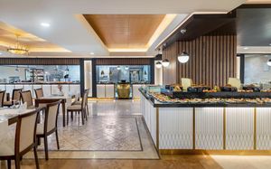 The main restaurant serves breakfast, lunch and dinner as an open buffet. You can enjoy local dishes as well as international specialties. The bars offer various alcoholic and non-alcoholic drinks, snacks, and cocktails.