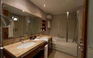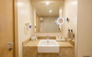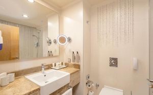Низкая раковина Высокий туалет Туалет с поручнями Подходит для гостей в инвалидных креслах