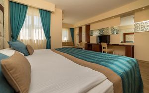 The modern rooms of Kamelya Selin Hotel are equipped with a flat-screen TV, electric kettle, and a minibar. They all have a balcony.
