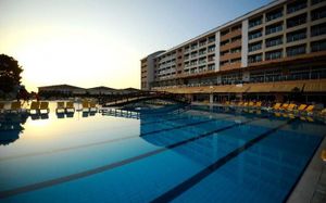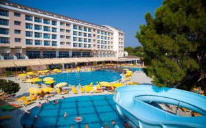 Тип отеля: Гостиница Городской, центр Пляжный, через дорогу (удаленность от моря через дорогу) Транспортная доступность: Близость к аэропорту - далеко (> 40 км) Об отеле: Отель расположен в 100 м от берега моря, через дорогу, в 85 км от аэропорта города Анталья, в 18 км от центра города Сиде. Общая площадь отеля - 32 000 кв.м Отель представляет собой 6- ти этажное здание Дата открытия - 2008 год. Количество номеров: 350 комнат Типы номеров: - 328 Standard Rooms (из них 3 номера для людей с ограниченой ответственностью), максимальное размещение - 2+2 чел. (32 кв.м) - 22 Family Rooms максимальное размещение 4+1 чел. (45 кв.м) В номере: - индивидуальный кондиционер - сейф (платно) - мини-бар (платно) - телефон - телевизор LCD со спутниковыми каналами - ковровое покрытие - балкон - ванна - фен - уборка в номере - ежедневно - смена постельного белья - 3 раза в неделю Тип питания: "Al" - система "всё включено" (10:00 - 24:00). Включает в себя: завтрак, поздний завтрак, обед, ужин - шведский стол; закуски в течении дня в барах отеля, безалкогольные и алкогольные напитки местного производства. Инфраструктура отеля: - конференц-зал (на 300 чел.) - прачечная - парикмахерская - интернет-кафе (платно) - услуги врача (платно) - магазины Бесплатный сервис: - Wi-Fi интернет в Лобби - Услуга "будильник" Развлечения и спорт: - открытый плавательный бассейн - 3 водных горки - крытый плавательный бассейн - фитнес-центр - СПА-центр - сауна - турецкая баня - массаж (платно) - джакузи - настольный теннис - бильярд - 2 теннисных корта (освещение, аренда ракеток и мячей, уроки тенниса платно) - волейбольная площадка на пляже - пляжный футбол - водное поло - водные виды спорта на пляже (платно) - дискотека (вход свободный, напитки платно) Для детей: - детский бассейн - мини-клуб (для детей от 4 до 12 лет) - детская кроватка (по запросу) - детский стульчик в ресторане - детское меню - детская площадка для игр Рестораны и бары: - основной ресторан - A’la Carte ресторан (по предварительной резервации, платно) - 5 баров Пляж: - собственный песчано-галечный пляж протяженностью 400 м , соединяется с отелем подземным переходом. Шезлонги, зонтики, матарацы, пляжные полотенца – бесплатно.