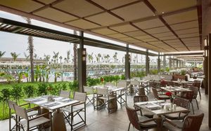 Рестораны a la carte/шведский стол:MARRONE (Итальянский) 19:30 - 22:00. Платно MERAKI (Эгейская кухня) 19:30 - 22:00. Платно SINI (Турецкий) 09:00 11:00/19:30 - 22:00. Платно. TERA IZAKAYA (Азиатская и международная кухня) 19:00 - 02:00. Платно THE DIVO LOUNGE: 19:00 - 22:00 • Все А’ля карт рестораны имеют плату за обслуживание с человека, при этом дети в возрасте от 0 до 6 лет могут ужинать бесплатно • В ресторане Terra Izakaya все блюда платные, так как он работает по стандартной ресторанной системе • Для сохранения утончённой атмосферы в ресторанах запрещены шорты, купальные костюмы и тапочки • А’ля карт рестораны работают в зависимости от сезонных условий и требуют минимального количества предварительных бронирований • Гости, проживающие в отеле от 4 до 8 ночей, имеют право один раз бесплатно посетить один из ресторанов à la carte: Marrone, Meraki или Sini. Гости, проживающие 8 ночей и более, имеют право на два бесплатных посещения этих ресторанов • Гости, забронировавшие номера категорий Prestige и Lustro Collection могут пользоваться The Divo Lounge бесплатно Требуется предварительное бронирование