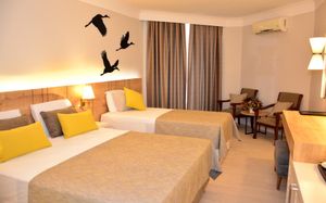 В главном ресторане отеля можно пообедать как в помещении, так и на открытом воздухе. 3 ресторана. В ресторанах по меню подают блюда из морепродуктов и турецкие кебабы. Кроме того, гости могут посетить лобби-бар, пляжный бар и бар у бассейна.