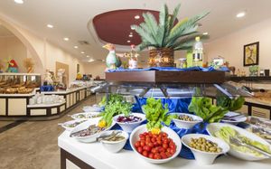 Расписание работы основного ресторана:Завтрак 07:00-10:00, поздний завтрак 10:00-10:30, обед 12:30-14:00, ужин 19:00-21:00, поздний ужин (суп) 23:00-00:00. Шведский стол. Закуски (в баре на пляже) 12:00-15:45