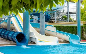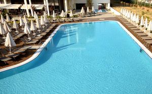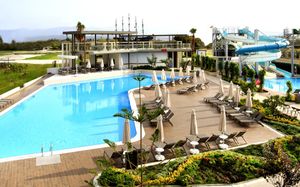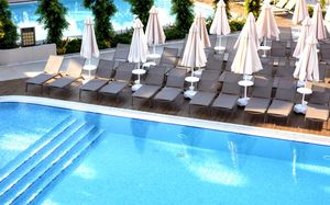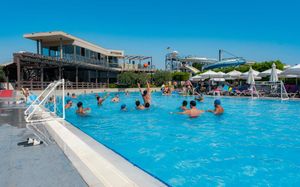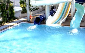 3 открытых бассейна с пресной водой (без подогрева), 420 кв.м, 200 и 140 кв.м 1 крытый бассейн с пресной водой (работает и подогревается 01.04.-15.05. и 15.10.-17.11.), 150 кв.м 3 водные горки, часы работы 10:00-12:00/14:00-16:00, 01/05-31/10 (по погодным условиям)