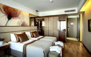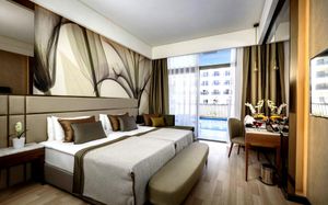 Сам отель достаточно новый, красивый. Удобное расположение. Убирали номер каждый день и вполне себе хорошо. Персонал очень хороший, тактичный. Питание - разнообразное меню. Всё вкусно. В любое время можно где-то перекусить. На пляжу с 12 часов так же готовят обед. На пляж идти минут 7. Но можно и доехать на бесплатных машинках.