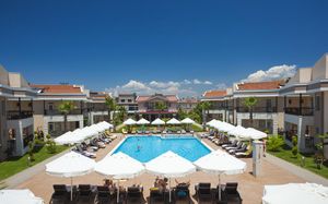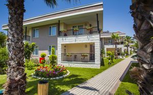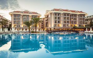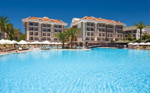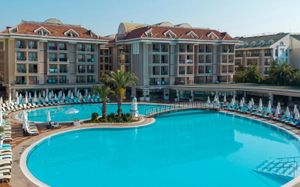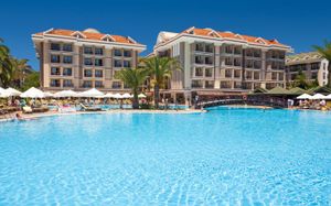 Отель расположен на берегу Средиземного моря, недалеко от древнего города Сиде. Состоит из четырех 5-этажных основных зданий Main Buildings и комплекса 2-этажных Вилл (через проселочную дорогу от основных зданий). Рекомендуем для активного семейного отдыха.