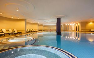 Бассейн 1 — крытый Бассейн 2 — открытый Детский бассейн 3 — открытый Раздевалка со шкафчиками в фитнес-центре / спа-салоне Фитнес Массажное кресло Пакеты услуг спа/велнесс Спа-лаундж/зона для релаксации Спа-процедуры Пилинг для тела Укладка Окрашивание волос Стрижка Педикюр Маникюр Уход за волосами Макияж Восковая эпиляция Уход за лицом Косметические услуги Общественные бани Турецкая баня Гидромассажная ванна/джакузи Массаж Спа и оздоровительный центр Фитнес-центр Сауна