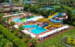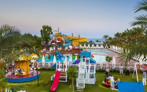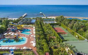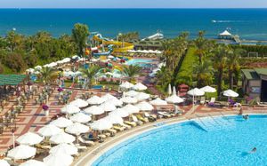 Курортный отель Hotel Turan Prince - All Inclusive расположен на берегу моря в Анталии. К услугам гостей песчаный пляж, удостоенный голубого флага, спа-салон, бассейн и элегантно оформленные апартаменты с кондиционером и меблированным балконом. В отеле работает аквапарк для взрослых и детей.