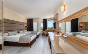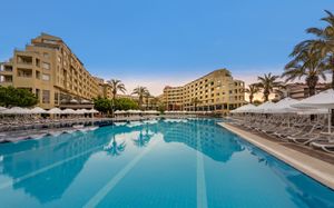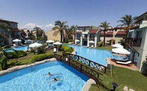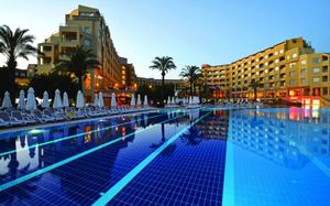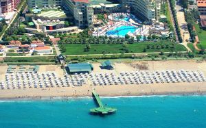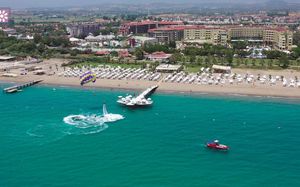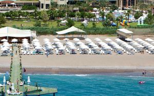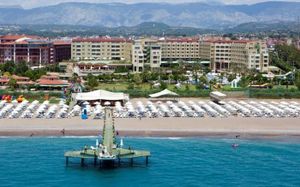 Построен в 2003 году, общая площадь составляет 112.000 квадратных метров, последняя реставрация сделана в 2007 году. Отель состоит из основного 7-этажного корпуса, двух 3-этажных Lake Houses и 3-этажных Club Building блоков. Пляж Собственный, песок. Зонтики, шезлонги, пляжные полотенца — бесплатно. У бассейна зонтики, шезлонги, матрасы — бесплатно Как добраться Отель находится на расстоянии 75 километров от аэропорта города Анталия, в 13 километрах от Сиде Номер: – ТВ с российским каналом – центральное кондиционирование – мини-бар – сейф (бесплатно) – ванна – фен – телефон – балкон – ковровое покрытие (hotel rooms) – керамическое покрытие (villa rooms) – детская кровать (по запросу) Территория: – 1 открыто-крытый ресторан – 11 баров – 4 a la carte ресторана (рыбный, итальянский, мексиканский, дальневосточный) – 8 конференц-залов (до 1300 персон) – 4 бассейна (2 открытых, 1 олимпийский открытый, 1 крытый) – бассейны, окружающие lake houses – 8 водных горок – 9 теннисных кортов (6 с жестким покрытием, 3 с мягким покрытием) – услуги врача – бизнес центр – парикмахерская – прачечная – интернет – лифт Развлечения и спорт: Бесплатно – фитнес-центр – джакузи – настольный теннис – теннисный корт – баскетбол – волейбол – шахматы – бадминтон – бочча – мини-гольф – водное поло – стречинг – волейбол – пляжный волейбол – серфинг – дискотека – аэробика – дартс – Турецкая ночь – живая музыка – развлекательные программы За дополнительную плату – салон красоты – массаж – парная (с 08:00-10:00 - бесплатно) – сауна (с 08:00-10:00 - бесплатно) – турецкая баня (с 08:00-10:00 - бесплатно) – освещение теннисного корта – теннисные ракетки и мячи – сквош – боулинг – картинг – горный велосипед – бильярд – стандартное футбольное поле – водные лыжи – парашют – каноэ – подводное плавание – верховая езда – водный банан – водный мотоцикл – водный велосипед – серфинг (без лицензии) Для детей: – 1 бассейн – мини-клуб (возраст 4-12 лет) – клуб для подростков (возраст 13-16 лет) – детское меню – детская площадка – няня (платно) – в ресторане – детское кресло