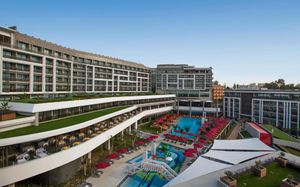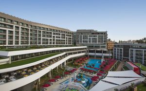 Отель расположен в Сиде, в поселке Кюмкёй, в 65 км от аэропорта, в 150 м от собственного пляжа. Здания отеля и интерьеры номеров выполнены в стиле хай-тэк. Отель состоит из одного основного 5-ти этажного здания и дополнительного 4-х этажного корпуса (лифты есть).