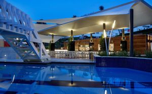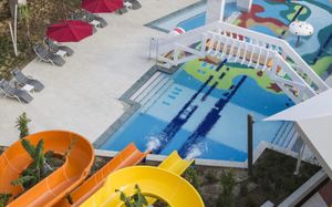 3 открытых бассейна без подогрева, один из которых для взрослых 16+, 423, 461 и 212 кв.м 1 крытый подогреваемый бассейн (в зимний сезон), 84 кв.м 2 водные горки для детей, часы работы 10:00-12:30/14:30-17:00 Открытые бассейны и горки не работают в зимний сезон