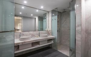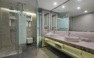 Низкая раковина Высокий туалет Туалет с поручнями Подходит для гостей в инвалидных креслах